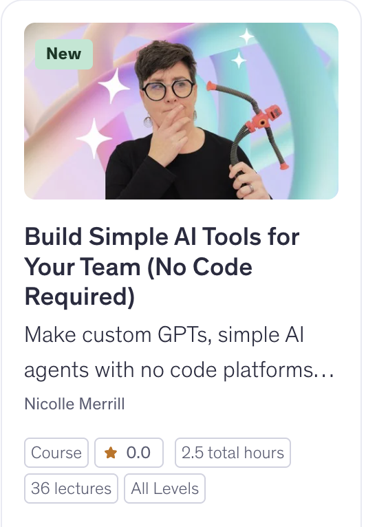 Taught by someone who gets it. These courses are created by Nicolle Merrill, CEO of Boring AI, and AI literacy consultant who has taught over 25,000 employees how to use AI at work.